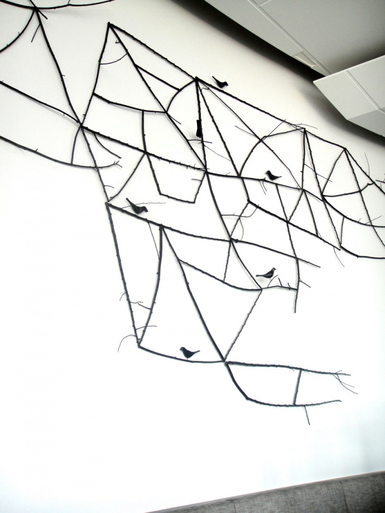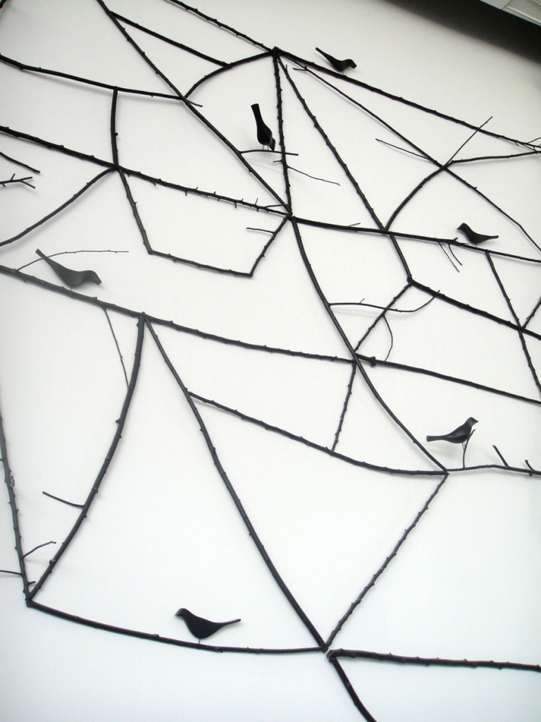 Architects Bates Smart commissioned Anita Bell and artist David Band to design, build and install this massive twig installation, stretching along a 60m wall for Gordon Ramsey’s Maze restaurant in Melbourne. The piece was constructed in apple and willow wood, with hand carved birds sitting on the branches.